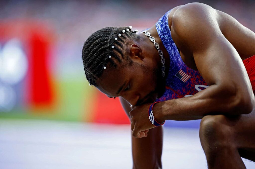 Noah Lyles, známý svými sebevědomými projevy, vstupoval do závodu s jasným cílem – zopakovat své předchozí triumfy a přidat ke svým úspěchům další zlato. Ještě před startem působil energicky a sebejistě, jeho gesta naznačovala odhodlání vyhrát. Během závodu však začal zaostávat, což vyvolalo spekulace, zda mu došly síly nebo jestli ho trápí zdravotní problémy. Po doběhu zůstal ležet na dráze a musel být ošetřen lékaři, kteří mu pomohli z dráhy.
