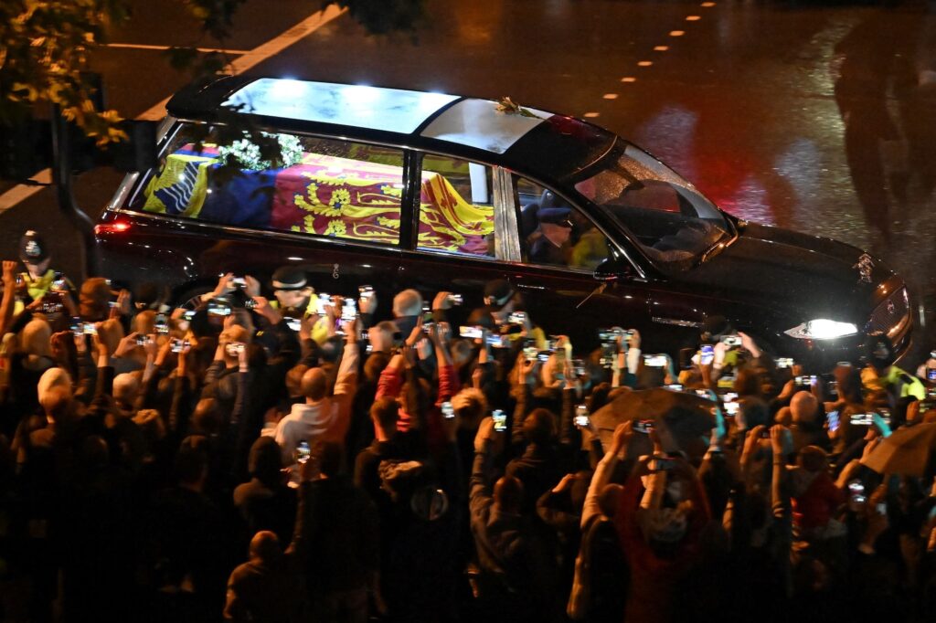 Do Buckinghamského paláce nechal král Karel III. rakev převézt v úterý večer. Dopravit ji tam museli ze skotského Edinburghu. Ve středu odpoledne ji pak kočár s černými koňmi v oficiálním procesí odvezl do Westminster Hall uvnitř Westminsterského paláce. Cesta trvala 38 minut a doprovázely ji jak slavnostní výstřely, tak zvonění slavného Big Ben. Na horní stranu rakve pak byla slavnostně umístěna státní koruna.