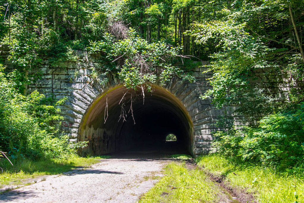 Odtud je to kousek do tunelu, který je asi 400 m dlouhý – delší, než vypadá zvenčí. Je tam tma, tak si vezměte baterku. „Nikde“ je na druhé straně, spolu s několika krásnými stezkami a výhledy. Opuštěné místo Proctor je odtud asi 16 km pěšky. Postupujte podle mapy trailů od National Park Service.