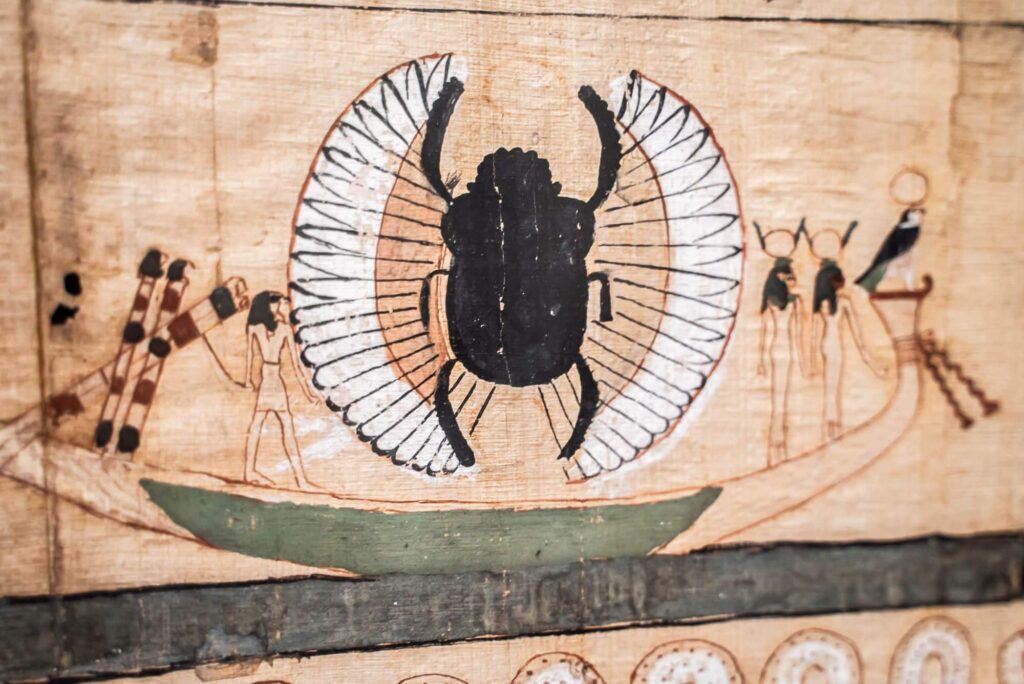Uvnitř pohřební komory pokryté reliéfní výzdobou je umístěn velký kamenný sarkofág, který nese hieroglyfické nápisy a zobrazení bohů, a to jak vně, tak uvnitř. „Všechny zmíněné nábožensko-magické texty měly zesnulému zajistit bezproblémový vstup mezi blažené a dobře zajištěný věčný život na onom světě,“ přibližuje ve zprávě Český egyptologický ústav Univerzity Karlovy.