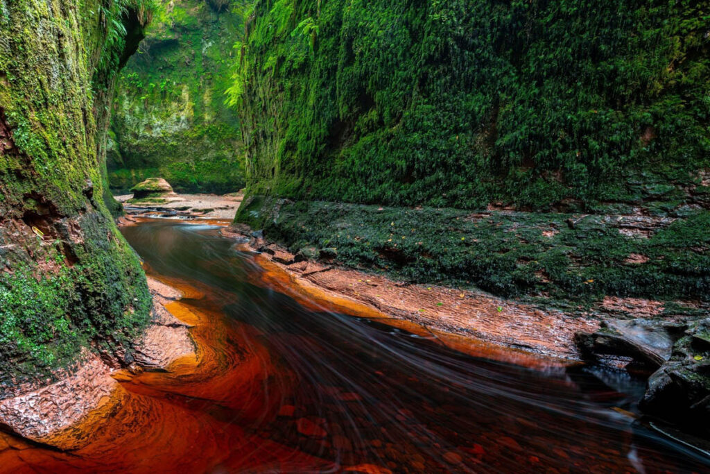 Finnich Glen leží nedaleko od jezera Loch Lomond, jižně od Drymenu a severně od Craighatu. Jedná se o strmou soutěsku, která prochází pískovcem a na jejím dně teče řeka.