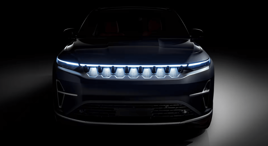 Vzhled je naprosto zásadní, a to proto, že se automobilka totálně oprostila od minulosti a vytvořila nové a unikátní SUV. To s předky sdílí pouze lehkou podobu legendárního grilu. Ten podsvicují LED diody. Úzké světlomety propojuje LED lišta. Z boku nás zaujmou 20palcová kola a elegantní linie karoserie. Zadní strana využívá rudou lištu jako světlomet, nad kterou najdeme nápis Jeep. Auto působí čistě a elegantně.