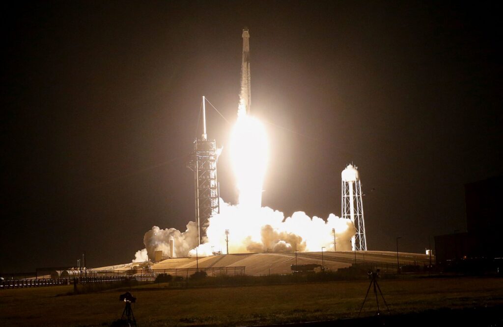 V přímém přenosu NASA-SpaceX bylo vidět, jak 25 pater vysoká raketa stoupá ze startovací věže a devět zažehnutých motorů rozzářilo noční oblohu. Podle společnosti SpaceX raketa při startu spotřebovává více než 2,6 milionu litrů paliva za vteřinu, napsala agentura Reuters.