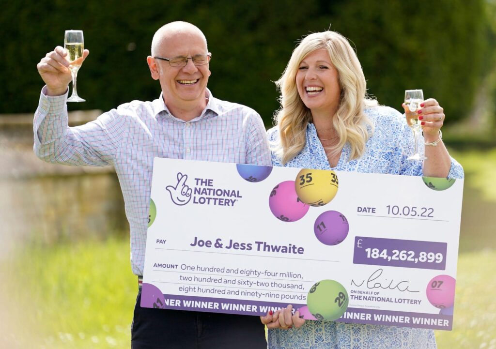 Joe a Jess Thwaiteovým z Gloucestershire ve Velké Británii se podařilo vyhrát dosud největší jackpot v loterii ve Spojeném království. V losování Euromillions získali naprosto pohádkovou částku 184 milionů liber, což je v přepočtu více než 5,3 miliardy korun českých. Štěstí jim přinesla čísla 3, 25, 27, 28 a 29 a čísla „Lucky Star“ 4 a 9. Všechna se jim podařila uhodnout. Zprávu přinesl The Sun.