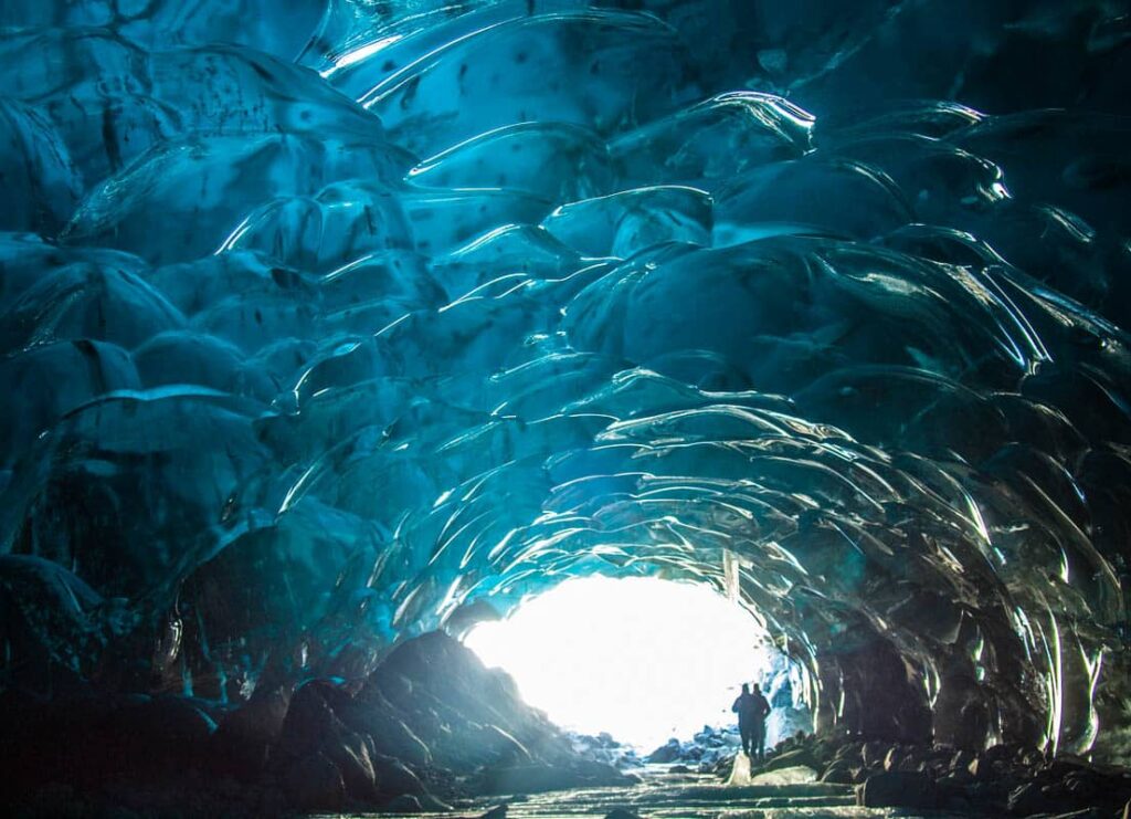 Představte si, že vstoupíte do nitra ledovce. Kolem vás se tyčí blankytně modré stěny a led vytváří prapodivné tvary. Slyšíte hučení vody. Zážitek jako z jiného světa.
