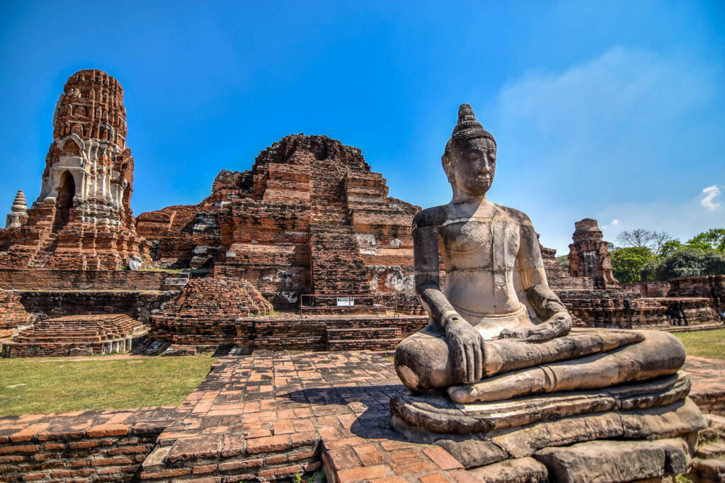 Wat Phra Mahthat, jedno z nejfotografovanějších míst v Ayutthayi, je známý velkou kamennou hlavou Buddhy uvězněnou v odhalených kořenech obrovského banyánového stromu. Jak přesně se tam dostala, není jasné. Mnozí věří, že vážné záplavy vyvolaly rychlý růst vegetace. Pár metrů od tohoto místa, jak praví legenda, dva bratři tvrdě bojovali o to, kdo uspěje jako král Siamu. Vítěz, král Ramathibodi I, postavil palác a sochy Buddhy na počest svého bratra.
