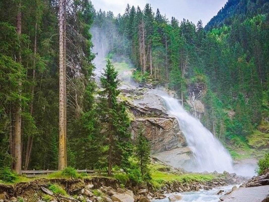 Na této stezce se zblízka seznámíte s Krimmlským vodopádem – stupňovitým vodopádem, který je nejvyšší v zemi. Měří 380 metrů a nachází se v národním parku Vysoké Taury, kde najdete jedny z nejvyšších hor Rakouska.