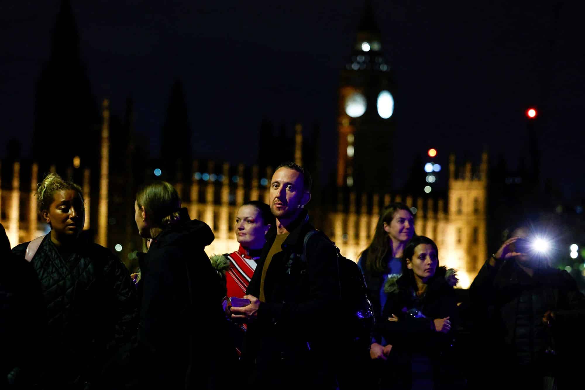 Mnoho lidí čekalo až 13 hodin ve frontě, kde se museli bránit podzimnímu chladu a strávit noc podél Temže, aby vzdali úctu zesnulé panovnici. Londýnská záchranná služba uvedla, že zaměstnanci a dobrovolníci se postarali o přibližně 2000 lidí, kteří stáli ve frontě, a 240 jich odvezli k ošetření do nemocnice.