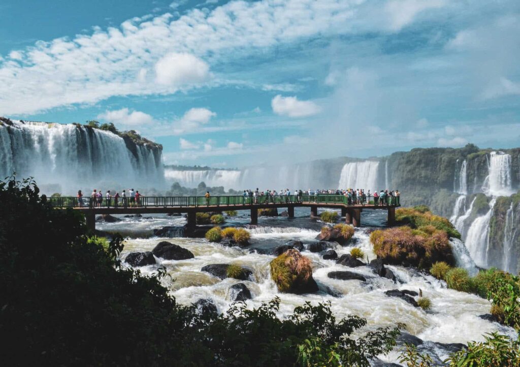 Dole na jihu Brazílie, na hranici Argentiny a Paraguaye, je malé město Foz do Iguaçu, jedno z nejnavštěvovanějších míst v zemi. Je to proto, že je domovem vodopádů Foz do Iguaçu, jednoho z největších vodopádových systémů na světě, který zahrnuje stovky mohutných kaskád. Vydejte se na dřevěnou plošinu, která vyčnívá přes 80 m vysoký vodopád Devil’s Throat, kde dno za deštivého dne zahaluje mlha. Pak žasněte nad exotickými opeřenci v ptačím parku, ve kterém probíhá několik projektů ochrany. Mezi další zajímavosti patří výlet k přehradě Itaipu, impozantní vodní elektrárně, a rychlé autobusové výlety do pohraničních měst Argentiny a Ciudad del Este v Paraguayi.