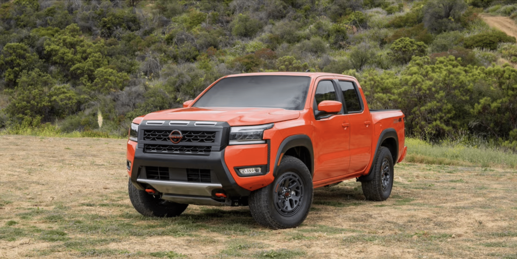 Přední část Frontieru 2025 působí robustnějším dojmem díky výraznější masce chladiče a ostřejším liniím. Modely PRO-X a PRO-4X se mohou pochlubit výrazným černým prvkem přes zadní dveře, který podtrhuje jejich off-roadový charakter. Nový odstín karoserie „Afterburn Orange“ dodává Frontieru sportovní a energický vzhled.