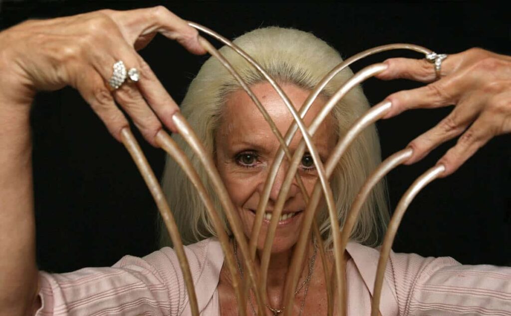 Nehty na rukou si prababička z amerického Utahu Lee Redmondová nestříhala od roku 1979. Po devatenácti letech bez nůžek a pilníku byla zapsána do Guinnessovy knihy rekordů a oficiálně uznána ženou s nejdelšími nehty na rukou. Na svém maximu v roce 2008 dosáhly Leeiny drápy celkem neuvěřitelných 8,65 metrů. Nejdelší byl ten na jejím palci s 90 centimetry. Když o svou chloubu náhle přišla, jen těžko se s tím vyrovnávala.