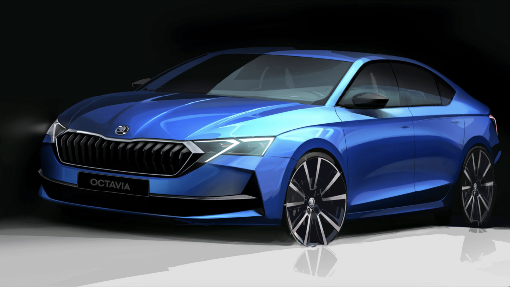Přední část toho nabízí k vidění skutečně dost, a to i přesto, že se jedná o pouhé skici. Maska chladiče dostala mnohem výrazněji tvarovanou mříž, které zároveň plynuleji nasedá na LED světlomety. I ty se svým tvarem zásadně proměnily. Působí mnohem více ostře. Zdá se, že zadní část nebude tolik pracovat se zakřivenými dveřmi kufru, kterými byla Octavia známá. Design se lehce promění a nabídne masivnější kontury.
