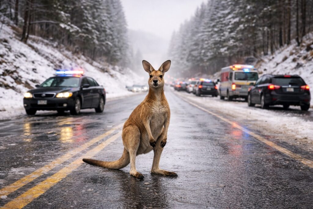 Když ve Virginii začne mrznout a silnice i svahy se promění v ledovou plochu, není to výzva jen pro řidiče. V jednom týdnu tam záchranáři a policisté zachraňovali tři zvířata, která se dostala do potíží. Dva psi sjeli po zledovatělých svazích tak daleko, že se bez pomoci nedokázali vrátit zpátky, a k tomu se na silnici objevil klokan.